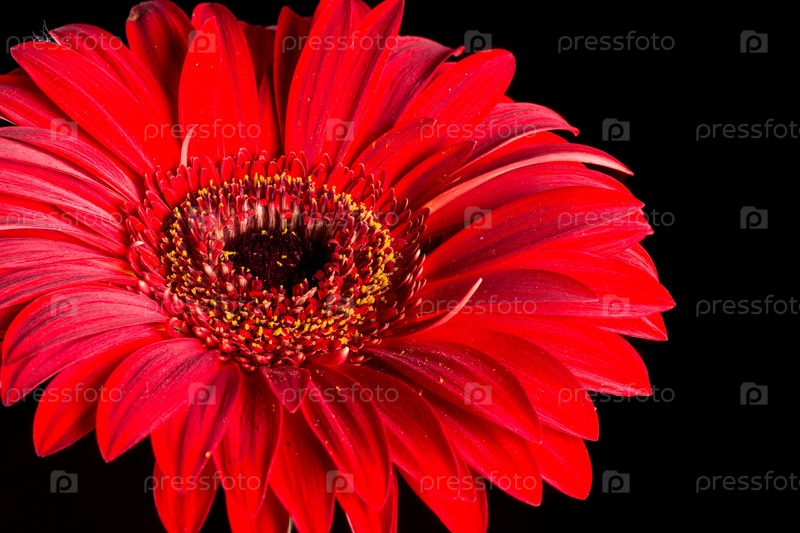 Красная гербера на черном фоне