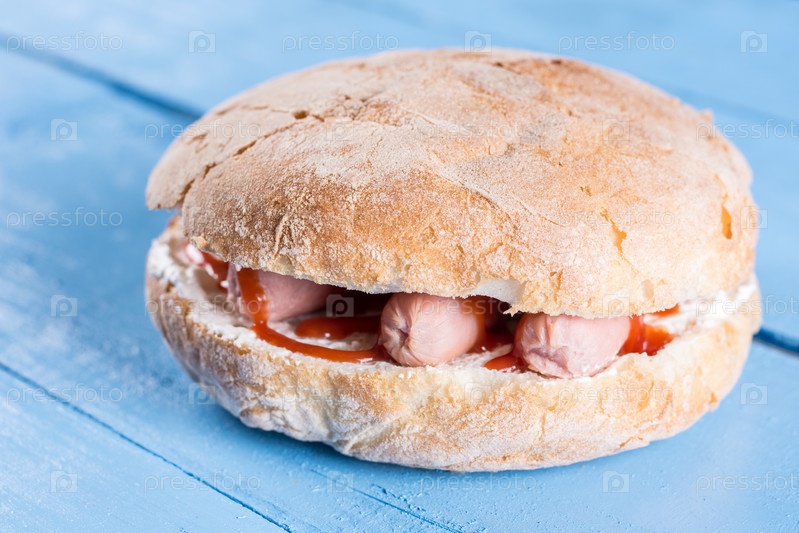 Горячие сосиски с кетчупом в хлебе