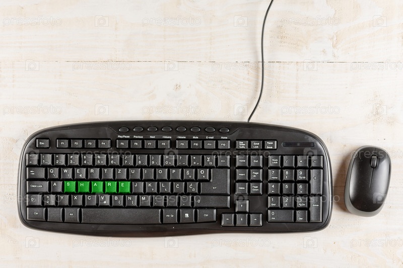 Клавиатура со словом АКЦИИ в зеленом цвете