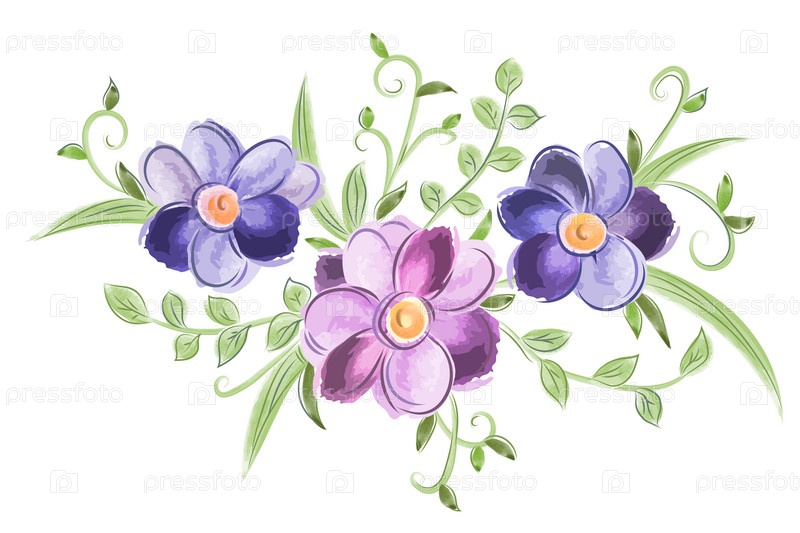 Цветочный акварельный орнамент с листьями