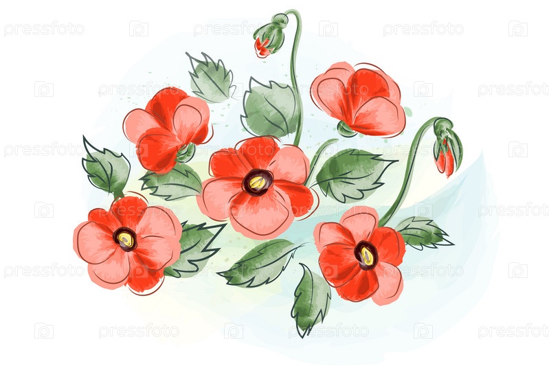 Акварельные маки букет