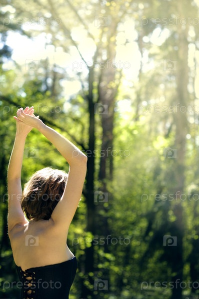 Беззаботная девочка с поднятыми руками