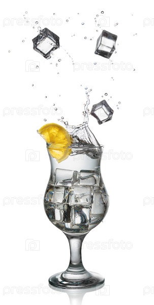 Коктейль с кубиками льда, лимоном и всплеском