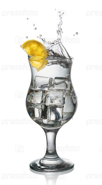 Коктейль с кубиками льда, лимоном и всплеском