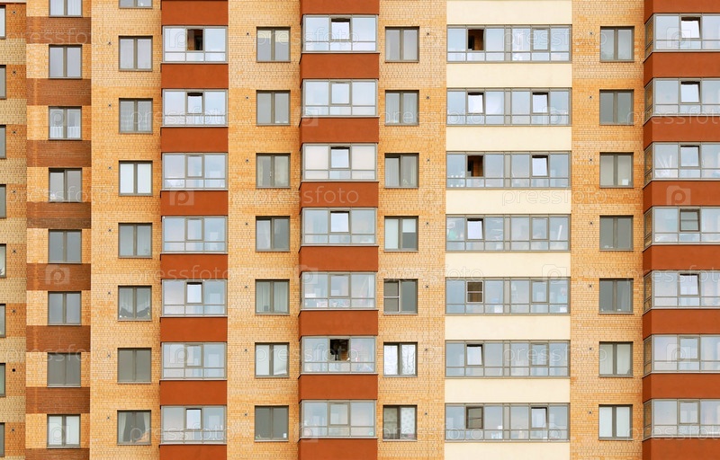 Окна дома в новом районе Кудрово в городе Санкт-Петербург, Россия