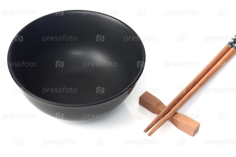 Черная чаша и палочки для суши