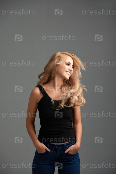 Белокурая модель встряхивает волосами