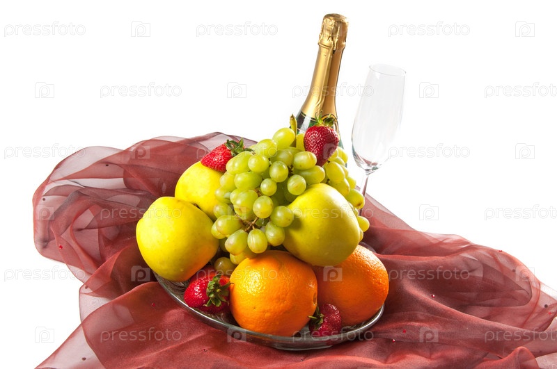 Блюдо с фруктами и шампанское