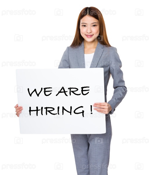 Деловая женщина с белым плакатом