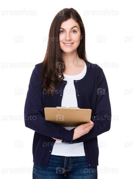 Брюнетка с планшеткой