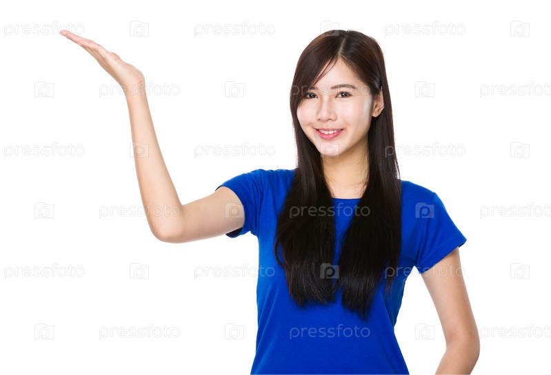 Азиатская молодая женщина с открытой ладонью руки