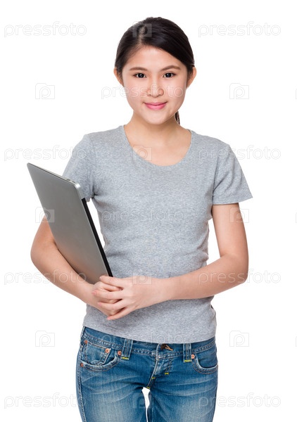 Молодая женщина с портативным компьютером