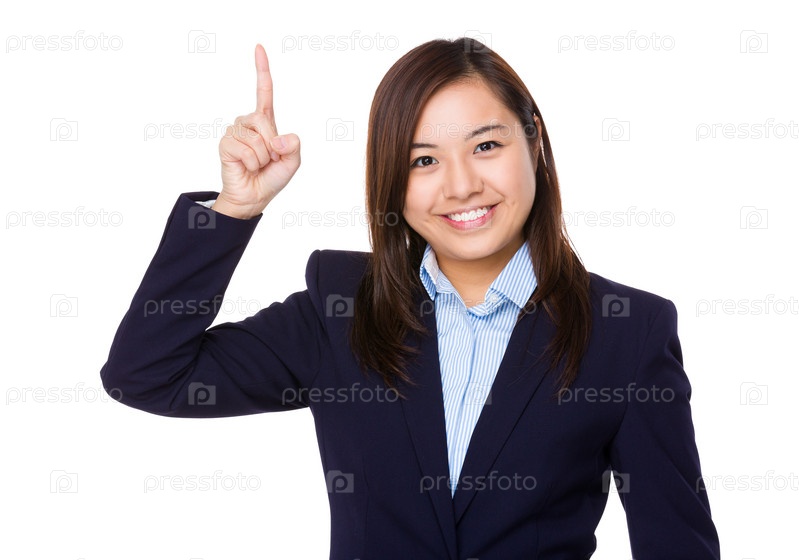 Азиатский бизнесмен с пальцем, показывая вверх