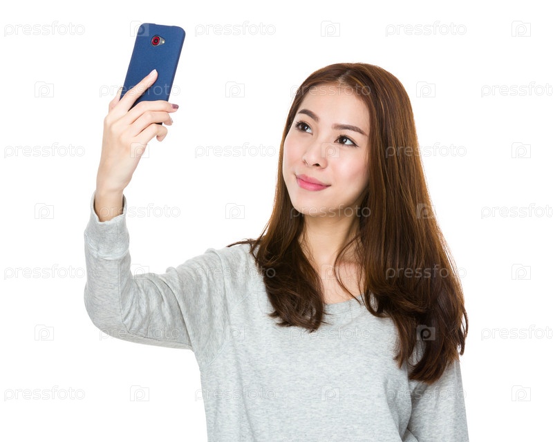 Молодая женщина азиатская делает селфи