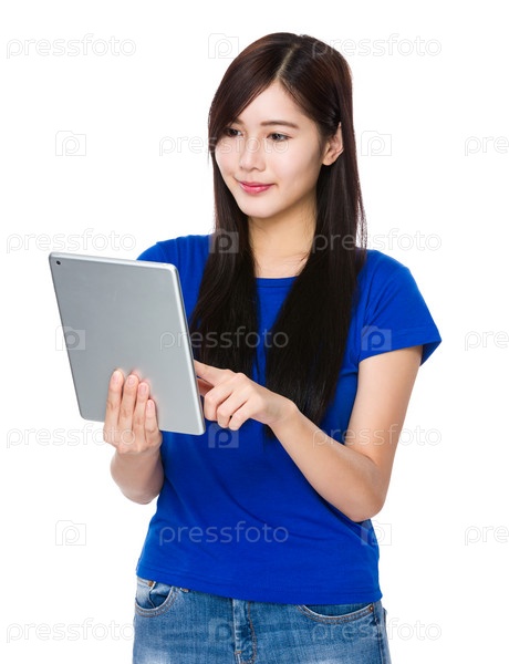 Азиатская молодая женщина с планшетом