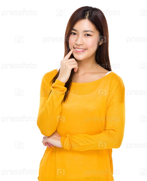 Женщина указывает на зубы
