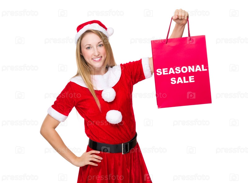 Рождественская девушка с сумкой сезонной распродажи