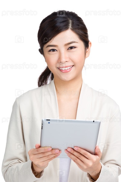 Азиатская женщина с планшетом