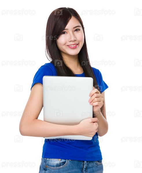 Азиатская женщина с портативным компьютером