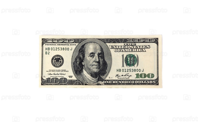 Сто долларов на белом фоне