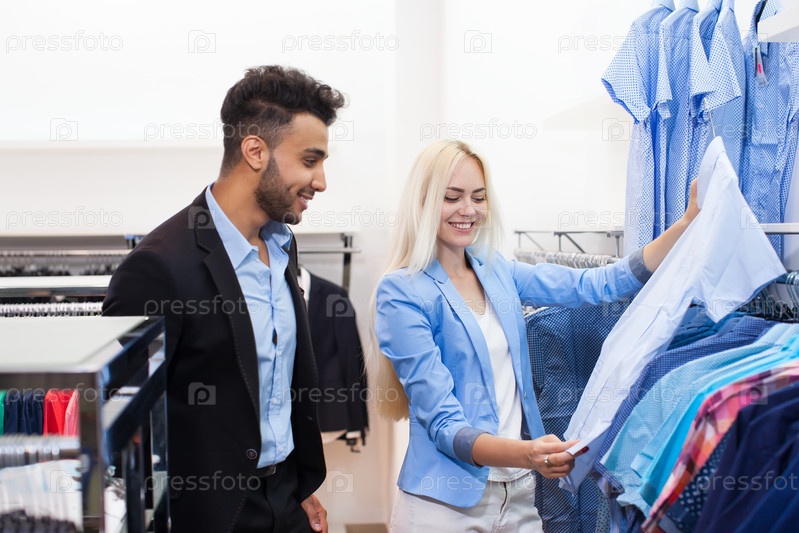 Молодая пара в магазине одежды