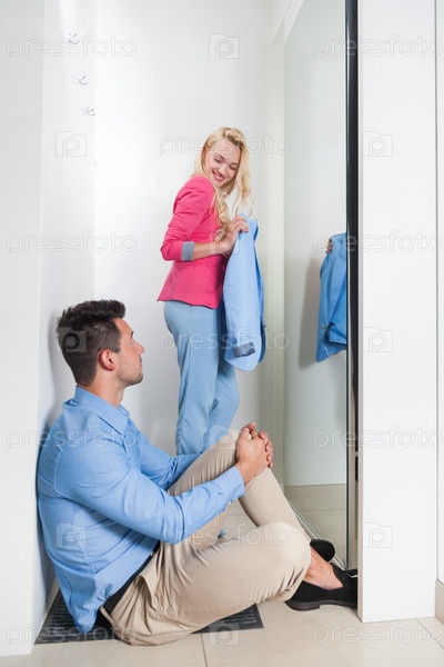 Молодая пара в магазине одежды
