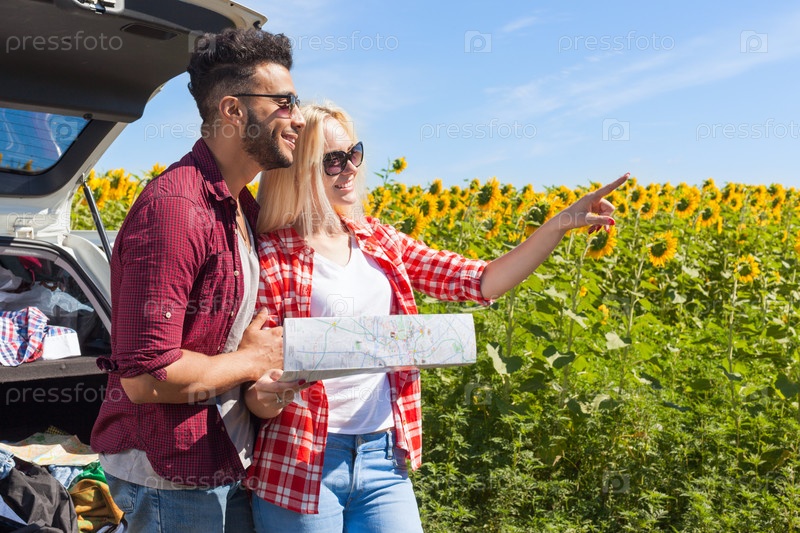 Пара ищет дорогу по карте