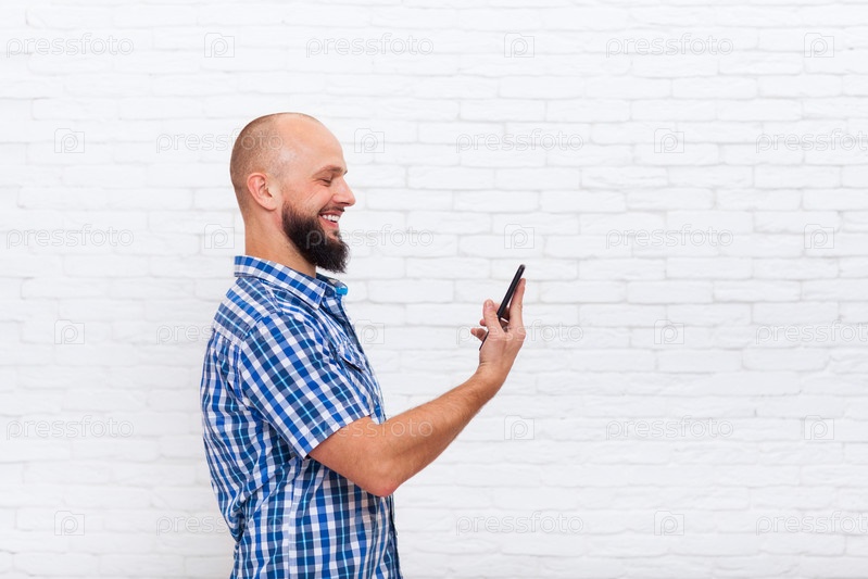 Бородатый парень с телефоном