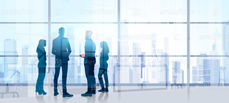 Силуэт деловых людей в современном офисе