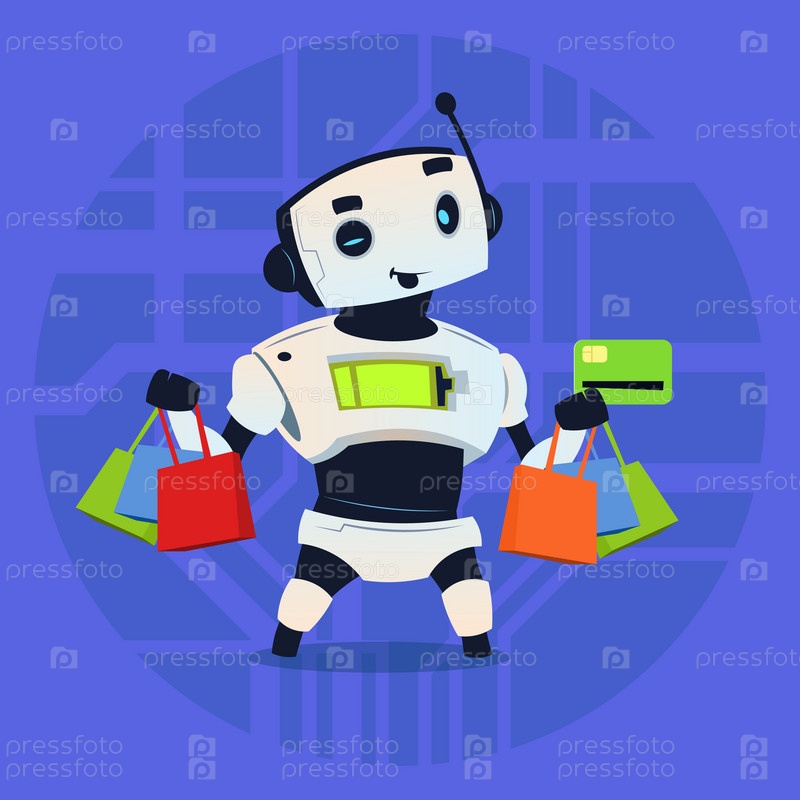 Симпатичный робот с покупками