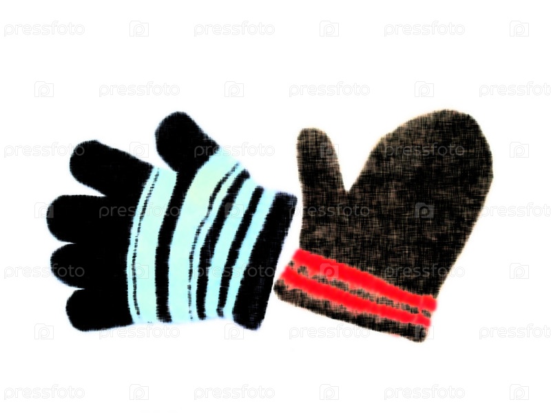 Варежка и перчатка на белом фоне