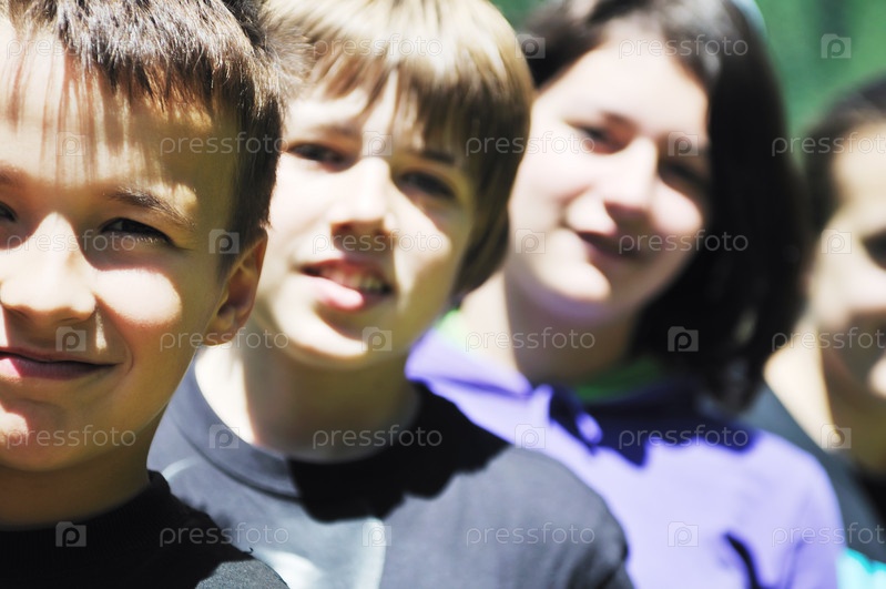 Счастливые дети веселятся на природе в солнечный день