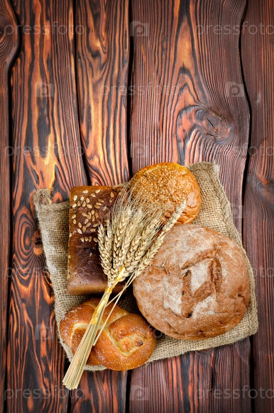 Хлеб и пшеница на деревянном фоне