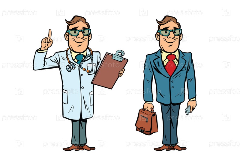 Счастливый врач в очках и бизнесмен