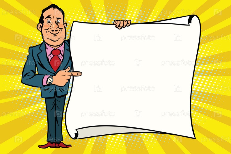 Радостный бизнесмен с плакатом