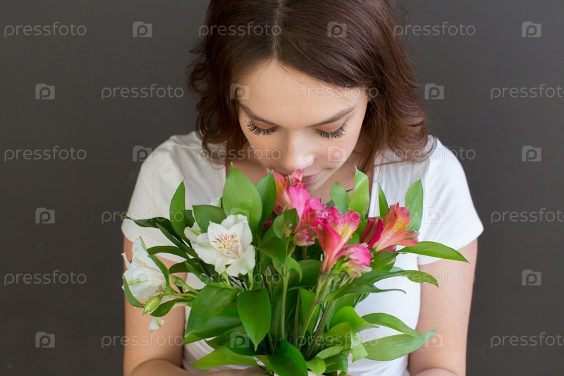 Женщина нюхает цветы