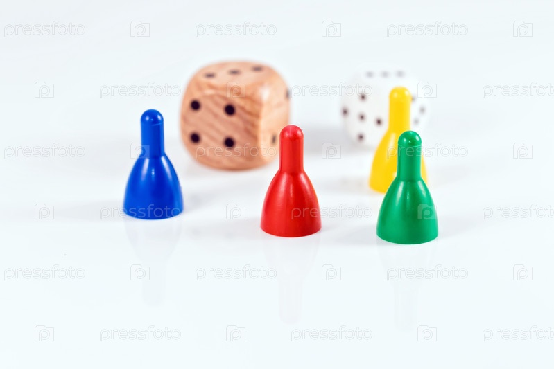 Красочные игровые и кубики и фигурки