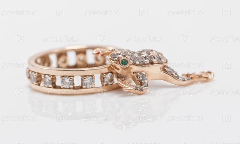 Золотой кулон в форме лягушки и золотое кольцо