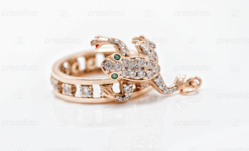 Золотой кулон в форме лягушки и золотое кольцо