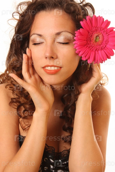 Красивая девушка с кудрявыми длинными волосами и ярким цветком