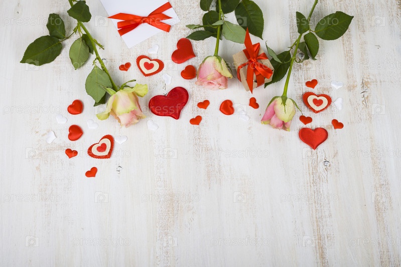 Розовые розы, подарок и сердце