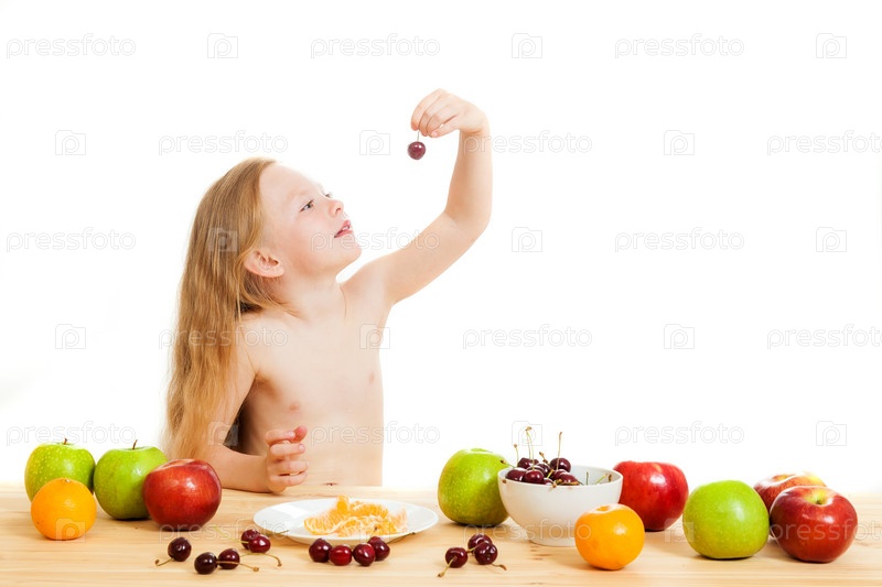 Маленькая девочка и фрукты на столе