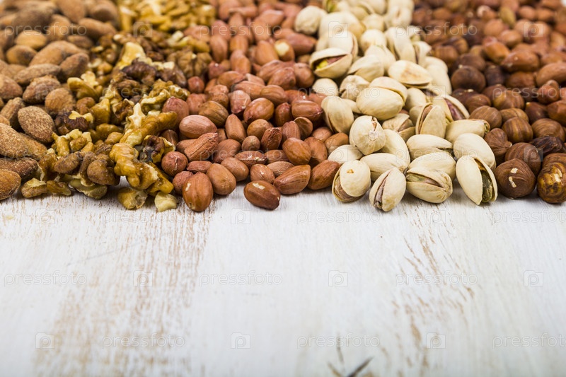 Орехи на деревянном столе