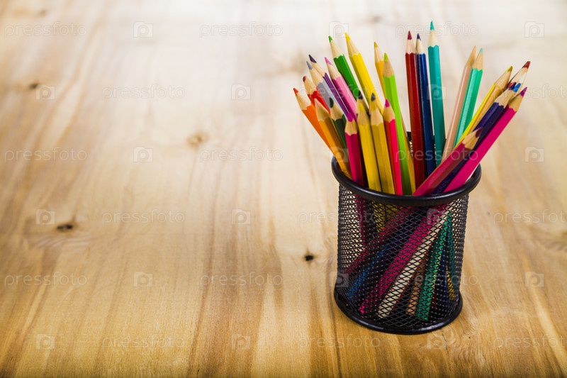 Карандаши на деревянном столе