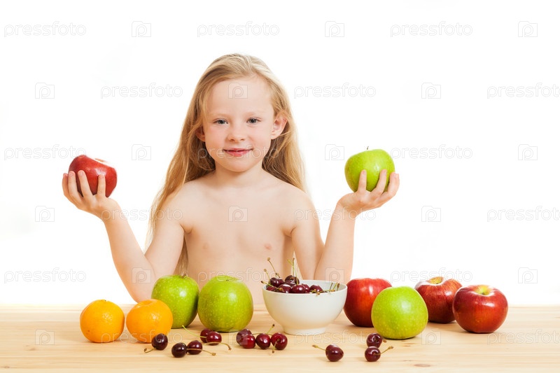 Маленькая девочка с фруктами и ягодами
