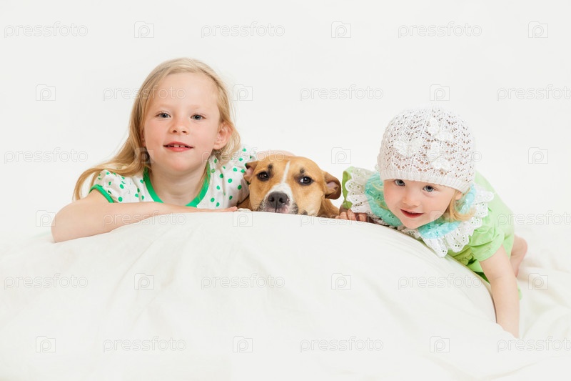 Две маленькие девочки с собакой