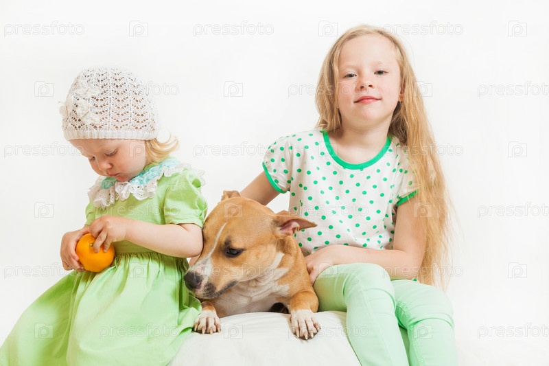 Две маленькие девочки с собакой