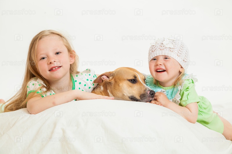Две маленькие девочки с собакой