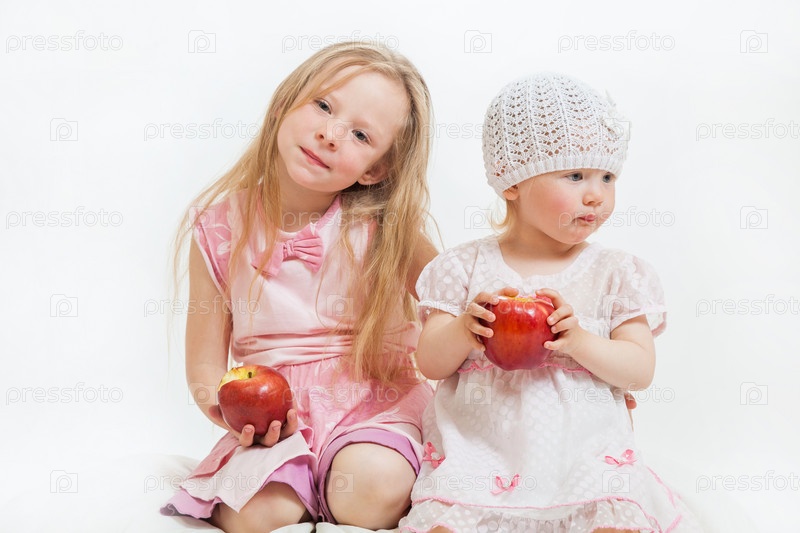 Две маленькие девочки с яблоками