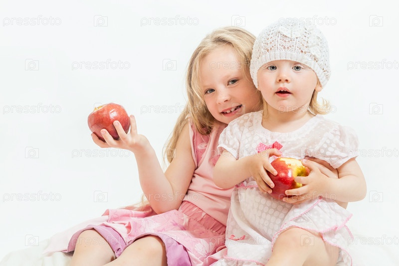 Две маленькие девочки с яблоками